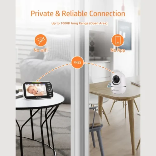 This monitor uses secure 2.4GHz FHSS wireless technology for privacy protection. It boasts a long-range signal coverage of 960 feet, providing flexibility and convenience across your home.