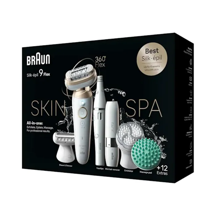 Comes with 12 attachments including a massage pad, exfoliation brush, mini face shaver and FaceSpa facial epilator for a full beauty routine.