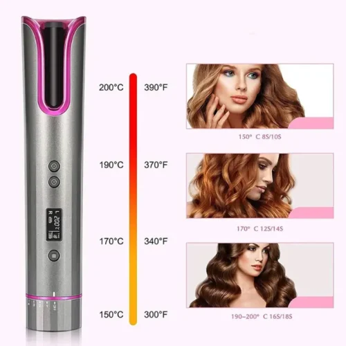 No skill is required! This cordless curling iron uses the latest automatic curling technology. It creates beautiful curls or waves at home in seconds, with just a button push. It’s gentle, prevents pulling or tangles, and works perfectly. Even as a novice, you can easily create beautiful curly hair anytime, anywhere. Say goodbye to messy, tangled cords!