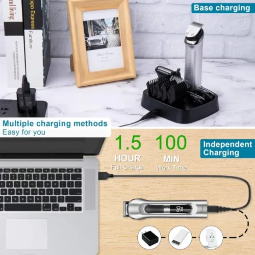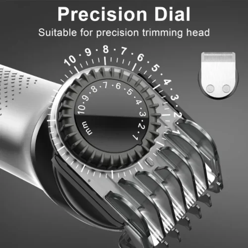 Get all your grooming needs covered with this 5-in-1 trimmer: Hair Trimmer, Beard Trimmer, Precision Trimmer, Body Groomer, Nose Trimmer. Comes with 5 guide combs (3mm, 6mm, 9mm, 12mm, 15mm) and 1 adjustable precision dial (1–10mm), giving you full control over your styling.