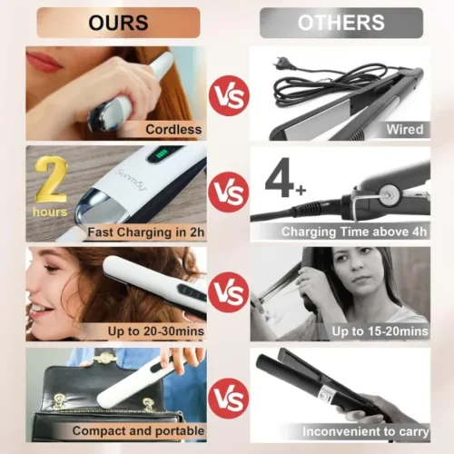 Weighing only 227g, this cordless flat iron lets you style anywhere—without searching for an outlet or untangling cords. You can use it in your car, at the gym, or outdoors. It fits neatly in your purse using the included travel pouch. However, due to limited power, it may not fully replace your wired straightener.