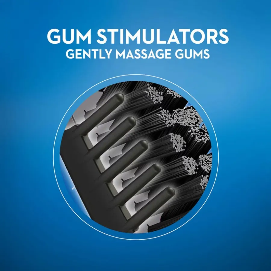 This Oral-B toothbrush uses CrissCross bristles with activated charcoal infusion. It helps remove surface stains and improves daily oral cleaning for a whiter smile.