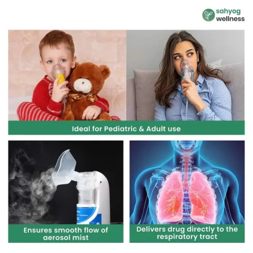 The Sahyog Wellness Ultrasonic Nebulizer is designed for safe and efficient respiratory therapy for both children and adults. Equipped with a complete kit, including child and adult masks, it offers user-friendly operation and effective atomization of medicine for better breathing.