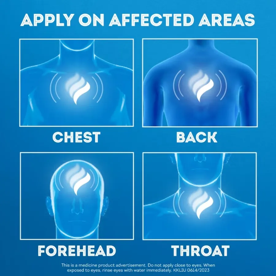 You can apply it on the chest, throat, and back. It also works with steam inhalation for deeper relief of congestion and breathing discomfort.