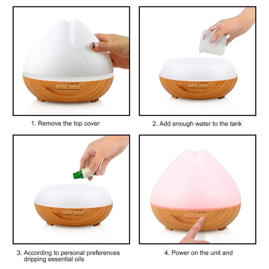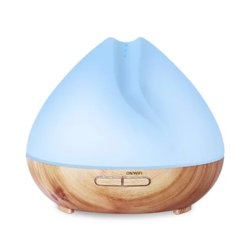 The diffuser features multiple LED color options. You can cycle colors or select a fixed tone. This creates a relaxing ambient light in any room.