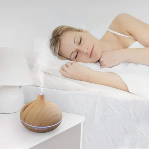 The diffuser includes a 300ml tank capacity. It can run for several hours continuously depending on mist mode. This makes it suitable for bedrooms, offices, and small living spaces.