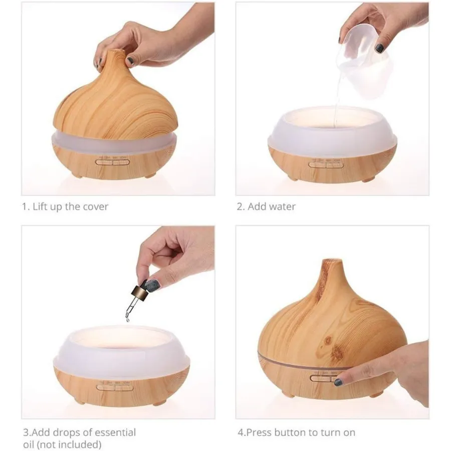 JoySusie Ultrasonic Aroma Essential Oil Diffuser 300ml Wood Grain Humidifier