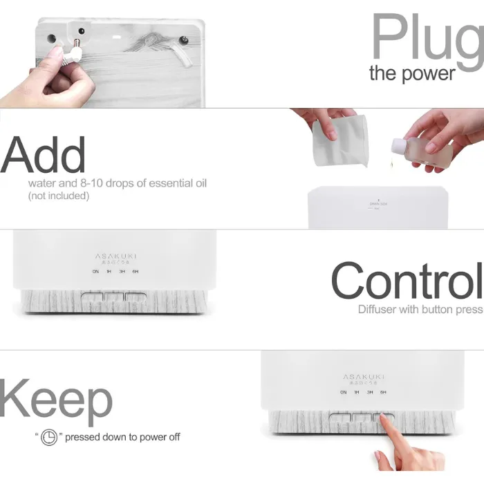 The mist and light functions work independently. Use it as a nightlight or keep the light off for peaceful sleep. Ideal for yoga sessions, workspaces, bedtime relaxation, or simply enhancing home ambiance.