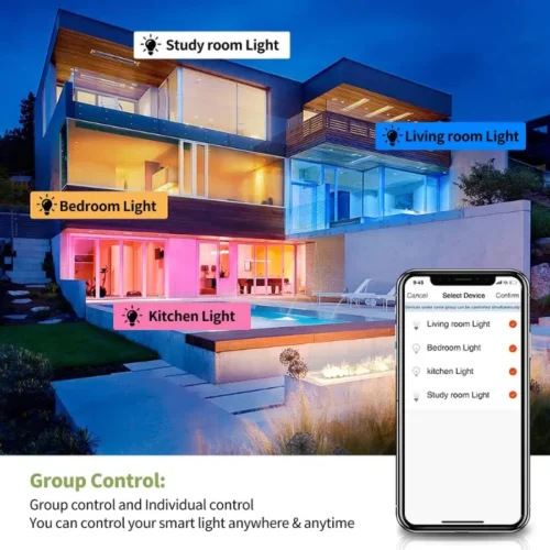 Connect to a 2.4GHz Wi-Fi network and manage your lighting anytime via the “Smart Life” app. Turn lights on/off, adjust brightness, change colors, set timers, or control multiple bulbs together using group settings or shared access.