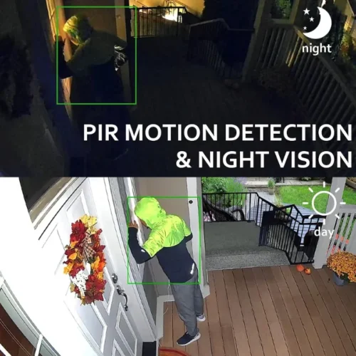 Includes two rechargeable batteries and a wireless indoor chime. A full charge supports up to 1 month of use if recording fewer than 20 events daily. It can store 700–900 video events per cycle. After pairing with your phone and chime, you’ll hear a ring indoors. (Compatible only with 2.4GHz Wi-Fi.)