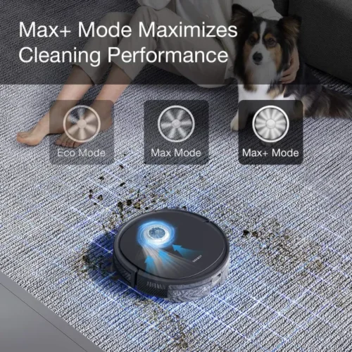 The built-in 3200mAh battery powers the robot for 150 minutes. It can clean up to 200 square meters on one full charge.