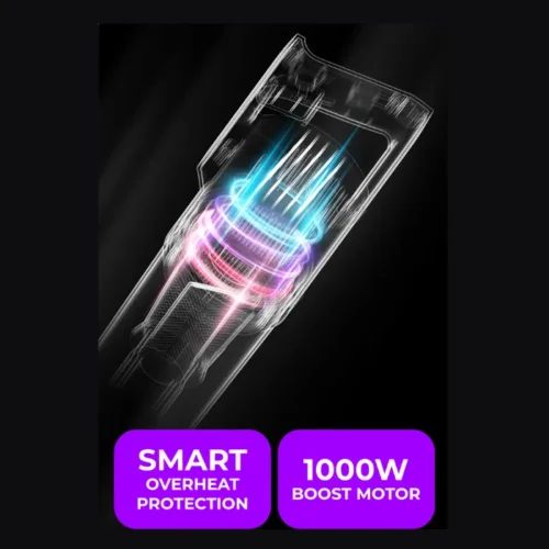 This vacuum cleaner features a best-in-class 1000W BOOST motor. As a result, it delivers an impressive 20,000 PA maximum suction power. Therefore, dust, hair, and debris are removed quickly and effectively.