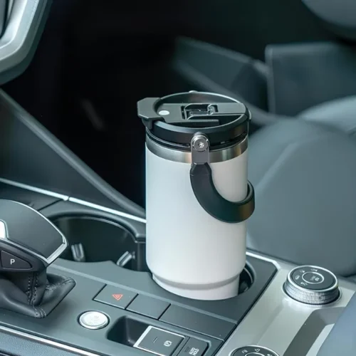 Double-wall insulation keeps drinks cold for up to 24 hours. A wide opening allows for easy cleaning and adding ice. The base is cup holder-friendly.