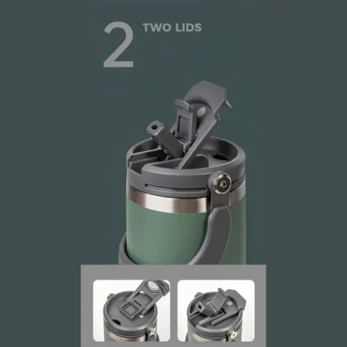 A protective push-to-open lid keeps the spout clean. The convenient carry loop also doubles as a lock, ensuring no accidental spills.