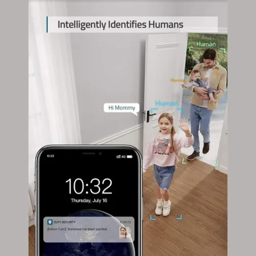 Built-in on-device AI instantly identifies whether a human or pet is in view, reducing false alerts and keeping you informed of real activity.