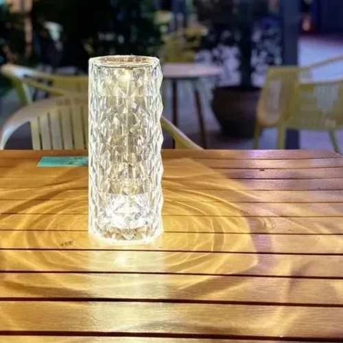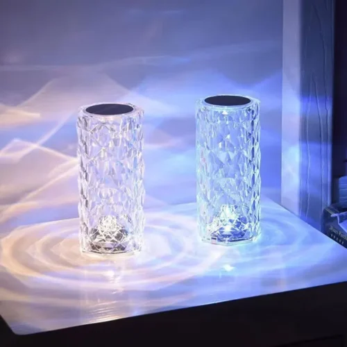 This stunning rose diamond table lamp features a diamond-cut surface that produces a 3D visual rose bloom effect when lit. It adds a romantic and luxurious touch to any space.