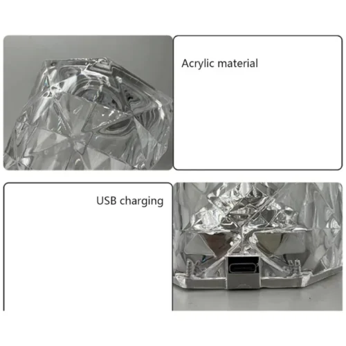 Crystal Diamond Table Lamp LED Night Light – USB Rechargeable, Touch Control (3 Colors)