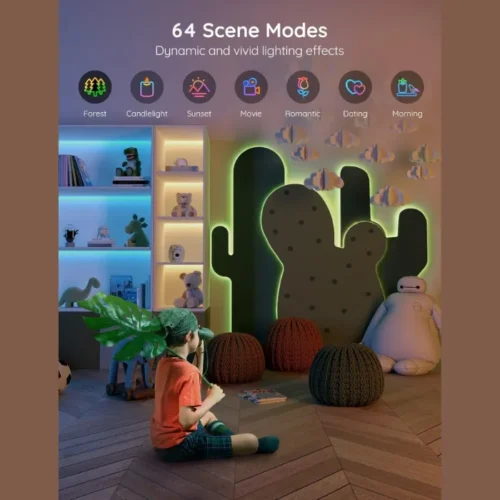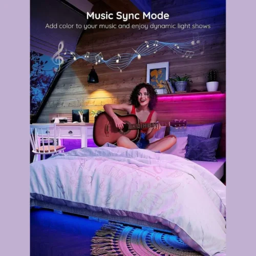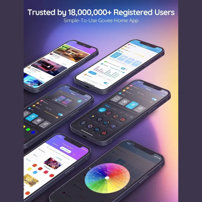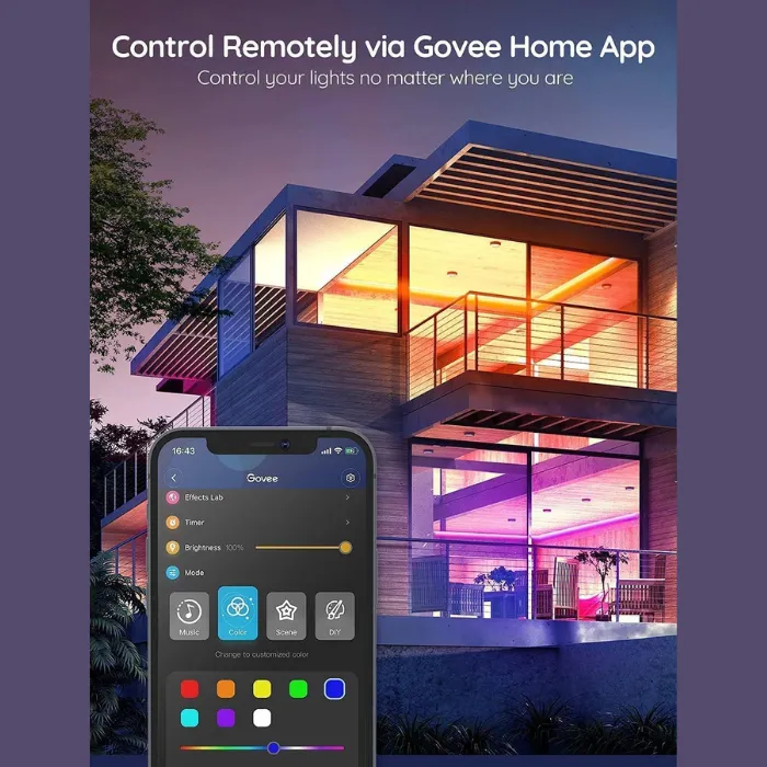 The Govee Home app provides wireless control with features such as DIY mode, timers and presets. A built-in microphone allows dynamic music sync, making the lights react to any type of audio through the app or control box.