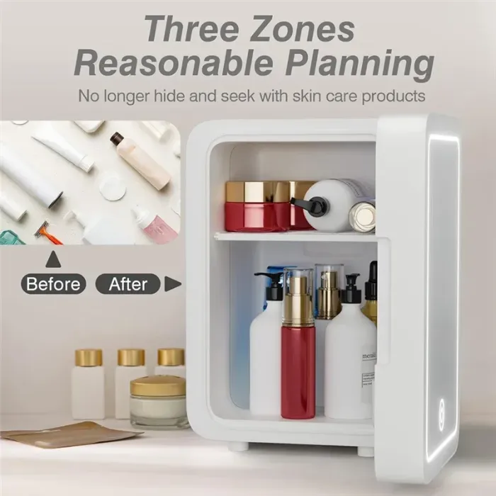 With AC and DC power support, this makeup fridge can be used at home or on the go. Its dual cooling and warming capability allows flexible use depending on your cosmetic storage needs.