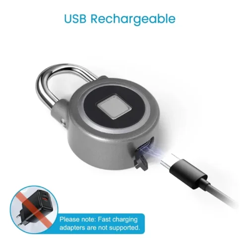Equipped with a rechargeable lithium polymer battery supporting up to 6 months standby or 2 months of regular use (approx. 2,500 unlocks) per full charge. USB charging quickly restores power when needed.