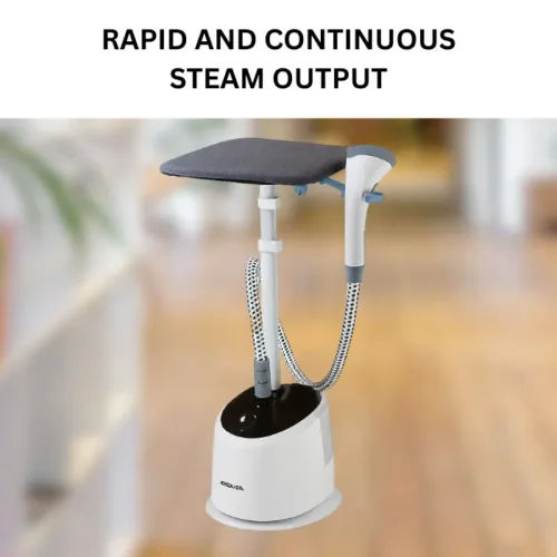 With 1800 Watts of power, this garment steamer heats up quickly. It provides rapid and continuous steam output, tackling wrinkles on all your fabrics with ease.