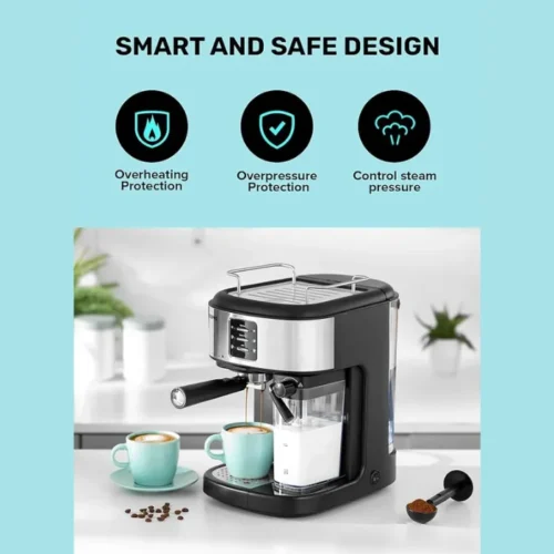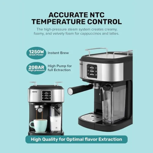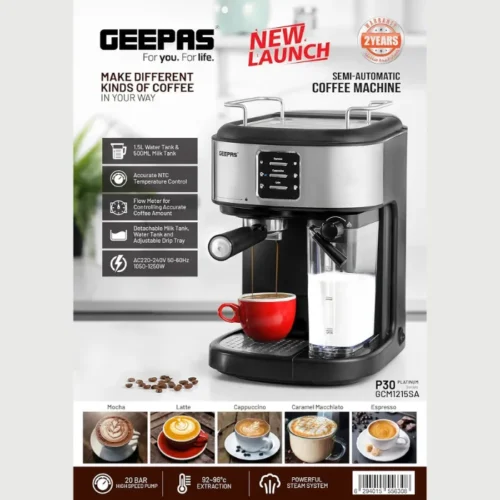 Brew robust, flavorful coffeehouse-style beverages at home with the Geepas espresso and cappuccino coffee machine. Its sturdy construction and powerful features bring café quality to your kitchen.
