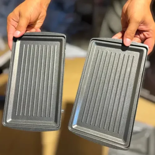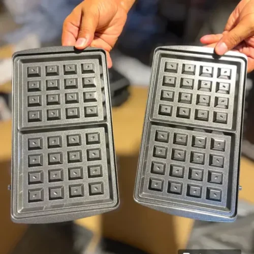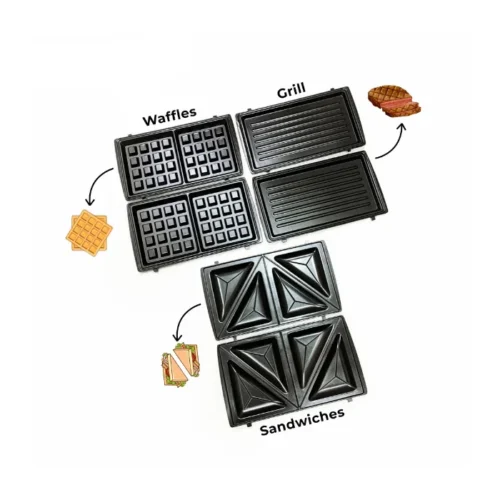 The set includes interchangeable plates for sandwiches, waffles, and grilling. Simply switch out the plates depending on your craving. As a result, one appliance meets all your breakfast and snack needs.