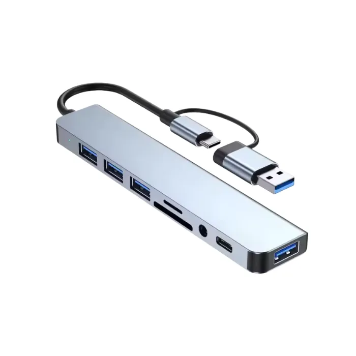 USB-C 8-in-1 Docking Station – Support for BC1.2, USB 3.0, Card Reading, Compact Design