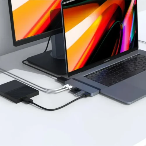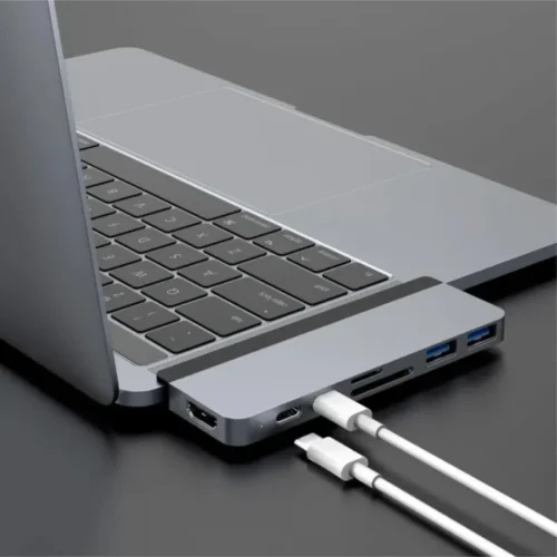 Transform your MacBook into a powerful workstation with the HyperDrive Duo 7-in-2 USB-C Adapter. Designed specifically for MacBook Pro and MacBook Air, this sleek, space gray hub offers seamless access to 7 essential ports, including 4K HDMI, USB-C with 100W PD, USB-A, and MicroSD/SD slots.