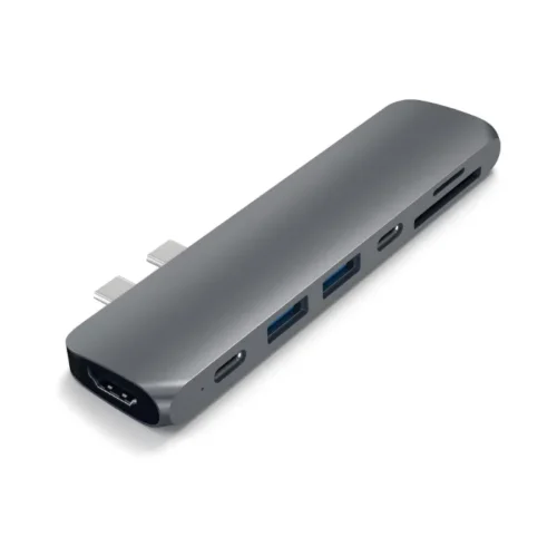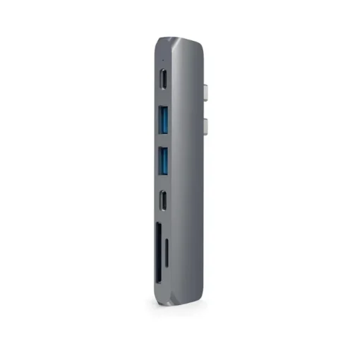Crafted in a sophisticated space grey finish, the aluminum enclosure perfectly complements your MacBook’s style while keeping your workspace sleek and professional.