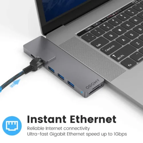 With a blazing data transfer rate of up to 5 Gbps, this hub ensures quick file transfers and consistent device performance. Enjoy stable internet access via Ethernet and charge your devices via Thunderbolt 3—all simultaneously.