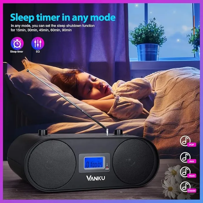 Its lightweight body and carry handle make it easy to move. Place it in your bedroom, kitchen, laundry room, or home office. It’s also great for the garage, gym, or study area. This boombox makes a thoughtful and practical gift.