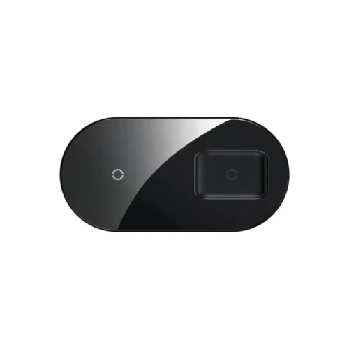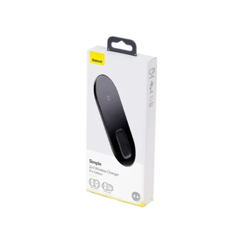 Power up your devices efficiently with the BASEUS Simple 2-IN-1 Wireless Charger Pro Version. This sleek black charger provides simultaneous, safe, and fast wireless charging for two devices.