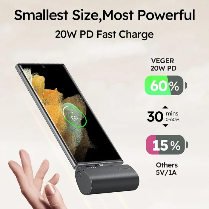 VEGER Portable Power Bank Type C: Compact 5000mAh Fast Charger for Android Devices