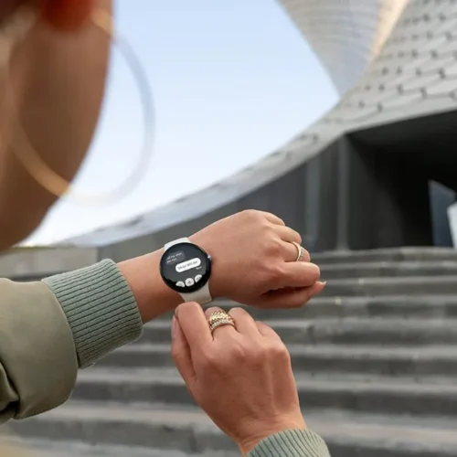 The Google Pixel Watch combines sophisticated styling with smart technology. With its polished circular, domed design, scratch-resistant Corning Gorilla Glass, and Wear OS by Google, it offers a seamless experience with just a glance.