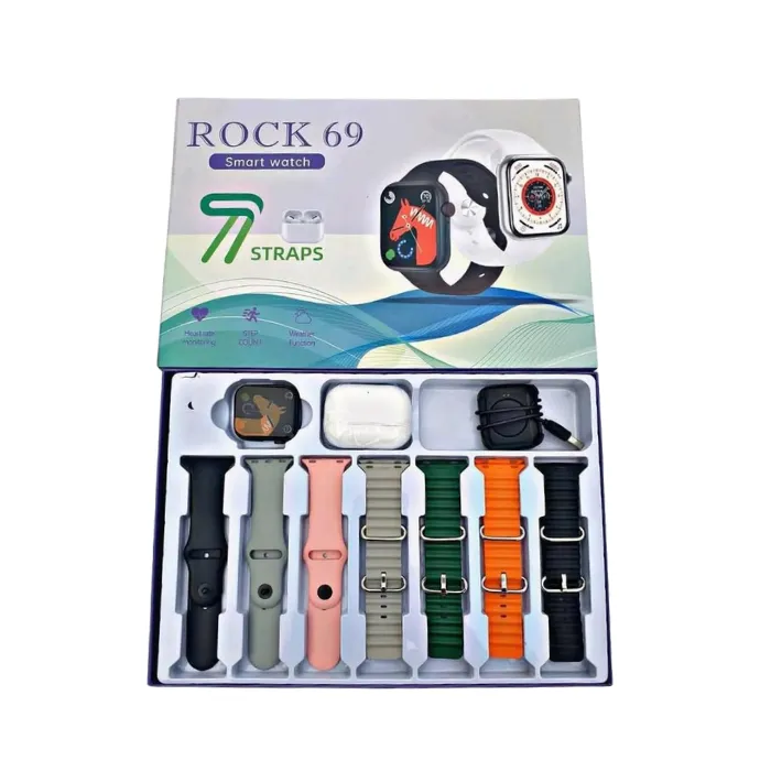 Rock 69 Smart Watch with Earbuds and 7 Straps – Premium Gift Set