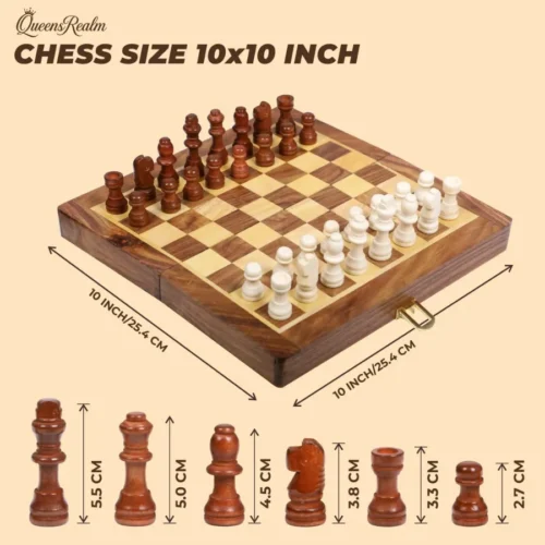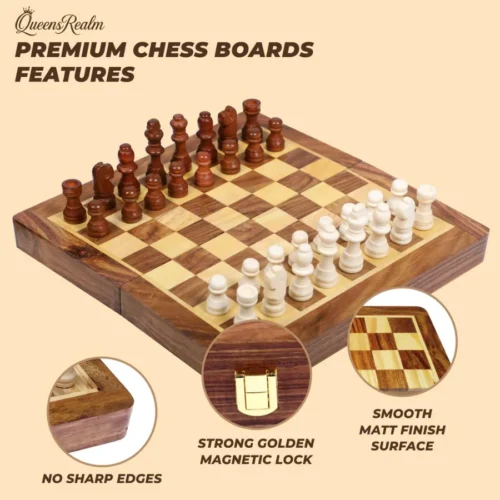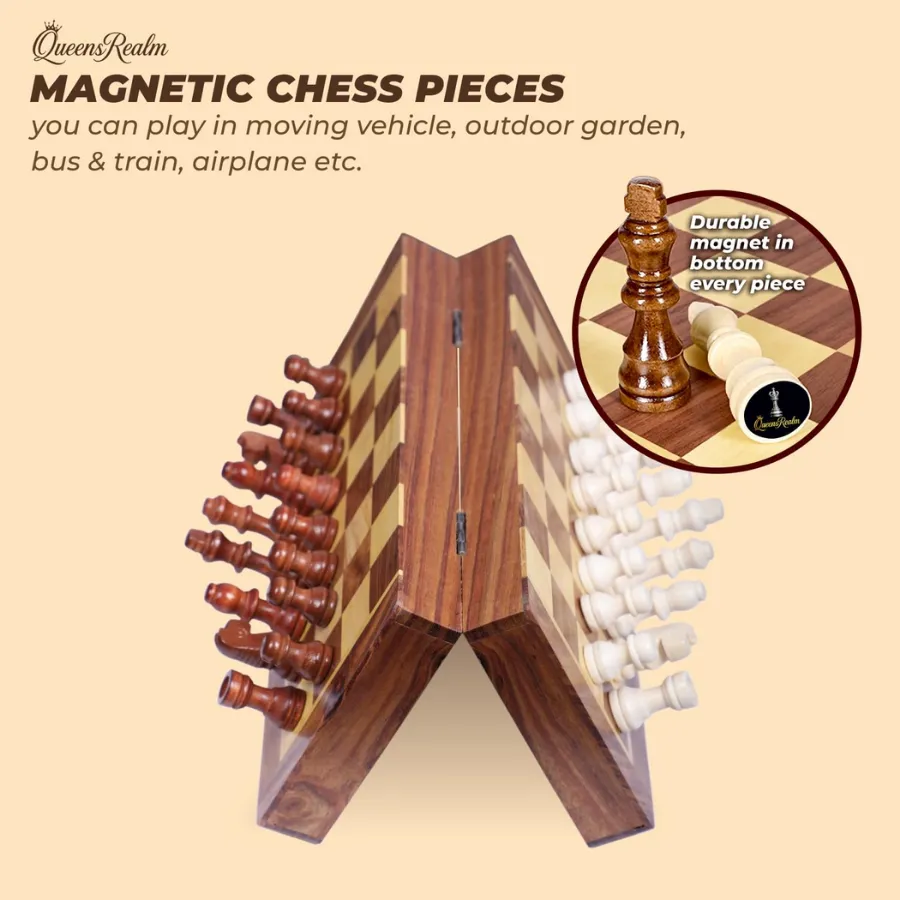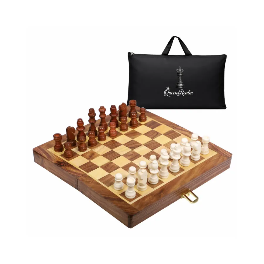 QueensRealm 10 Inch Sheesham Magnetic Chessboard Set